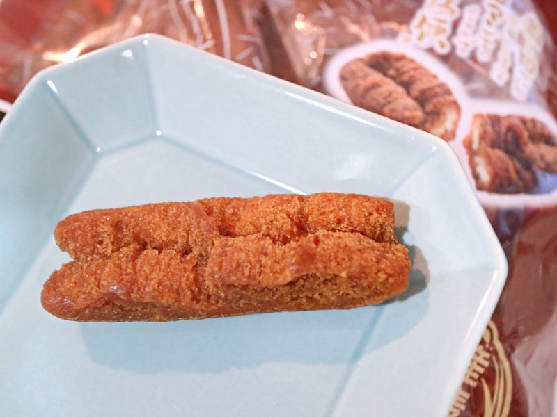 1本を半分に折ってみると、黒糖のシロップ?が生地に染みているのがわかります。