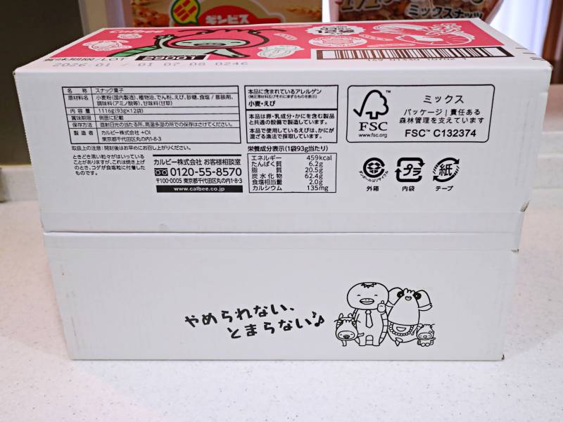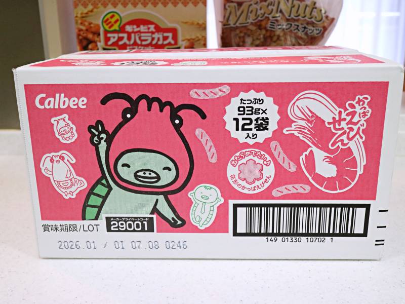コストコに売っている「かっぱえびせん」は1袋93g入り、合計12袋が1箱に入っていました。