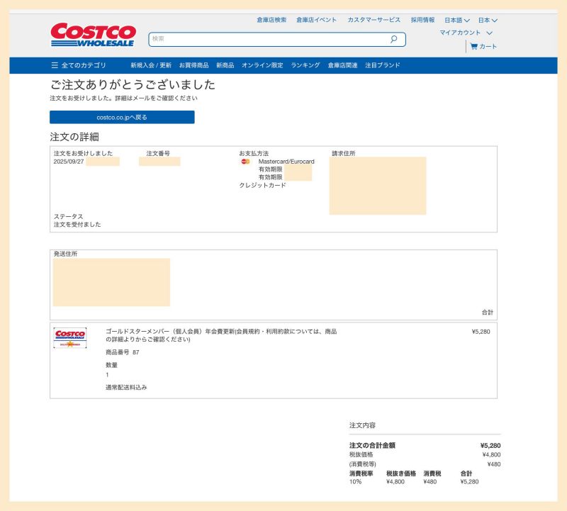 9月にコストコの会員更新をオンラインで手続きしました。